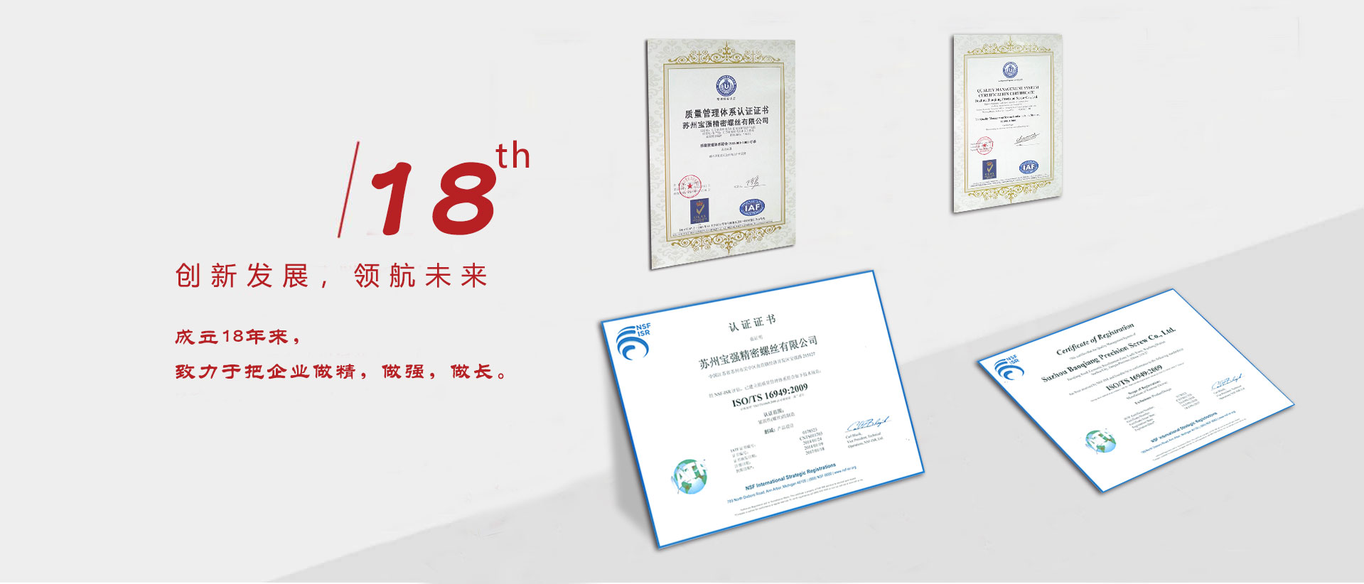 蘇州寶強五金與精密螺絲合并,通過TS/16949體系認證。